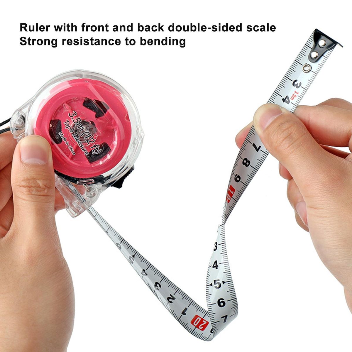 A self-locking design makes this tape measure easy to use. And it is printed on both front and back, with clear printing, high precision and easy to read.