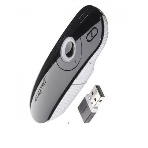 Laser Pointer, slide page change, blank screen button, volume control, mute, plus slideshow start/top buttons.