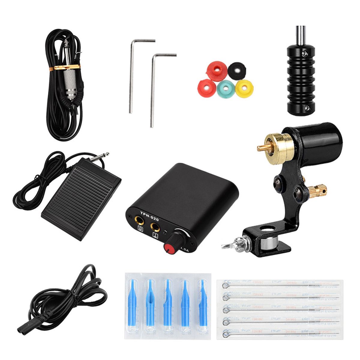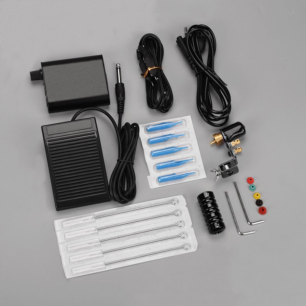 Tattoo machine, power cable, tattoo power supply, clip cord, tattoo foot pedal, tattoo needles amp; cartridges set, screwdriver, tattoo grip and needle grommets are included.