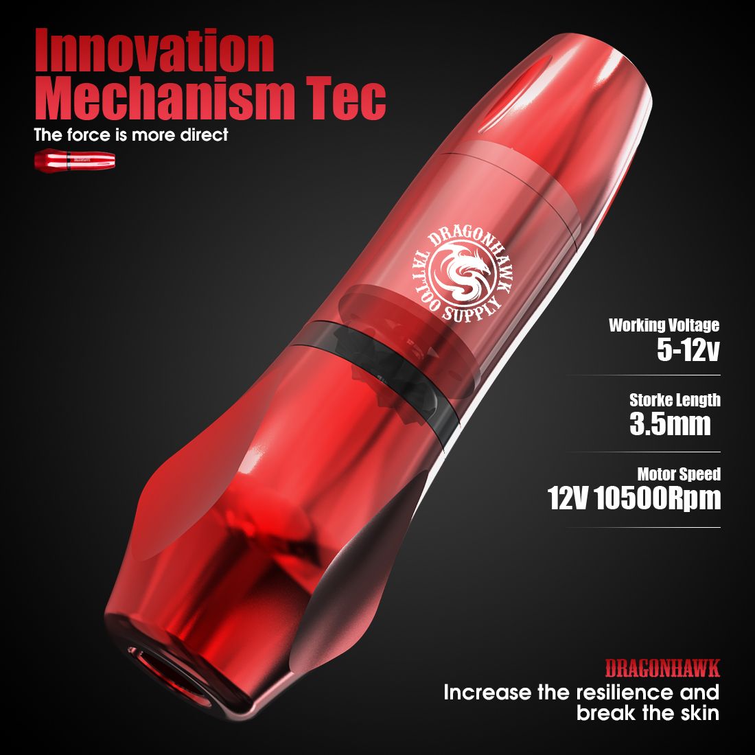 weight 194gDiameter 35mmLength 122mmStroke 3.5mmWorking Voltge 5-12VSpeed 12V/ 10500RPMSuit for all styles tattoos,New school ,old school,linning coloing ,easy to use.