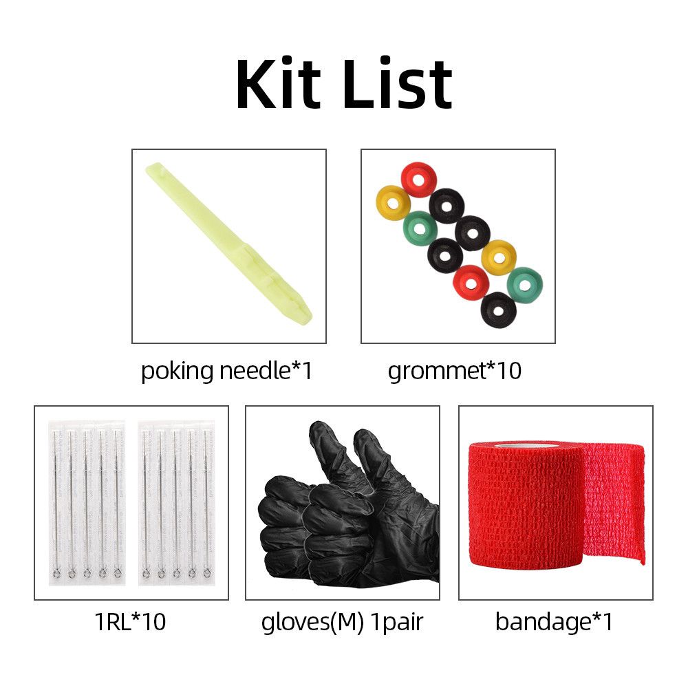 [A Great Assortment] It includes 10 pieces of tattoo needles (1RL / 3RL / 5RL / 7RL / 9RL), poking needle, 10 pieces of grommets, a pair of gloves and a roll of bandage.