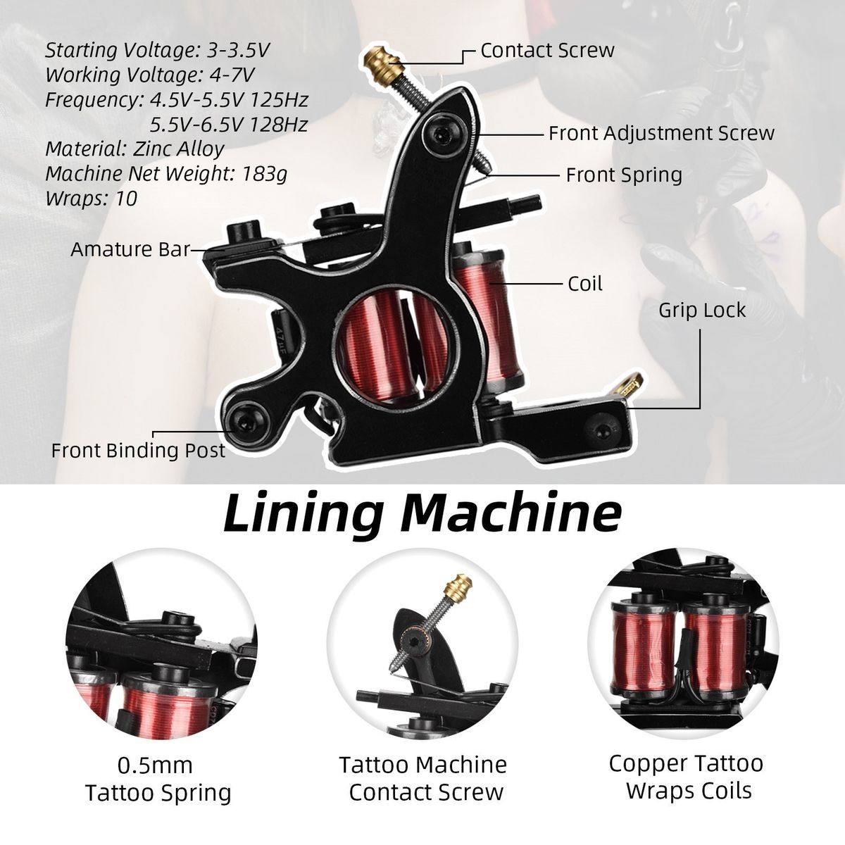 Made of aluminum alloy, long-lasting stability, low noise, lightweight, easy, and portable to use. A complete professional tattoo kit is a good choice for beginners, starters, and the tattoo artist.