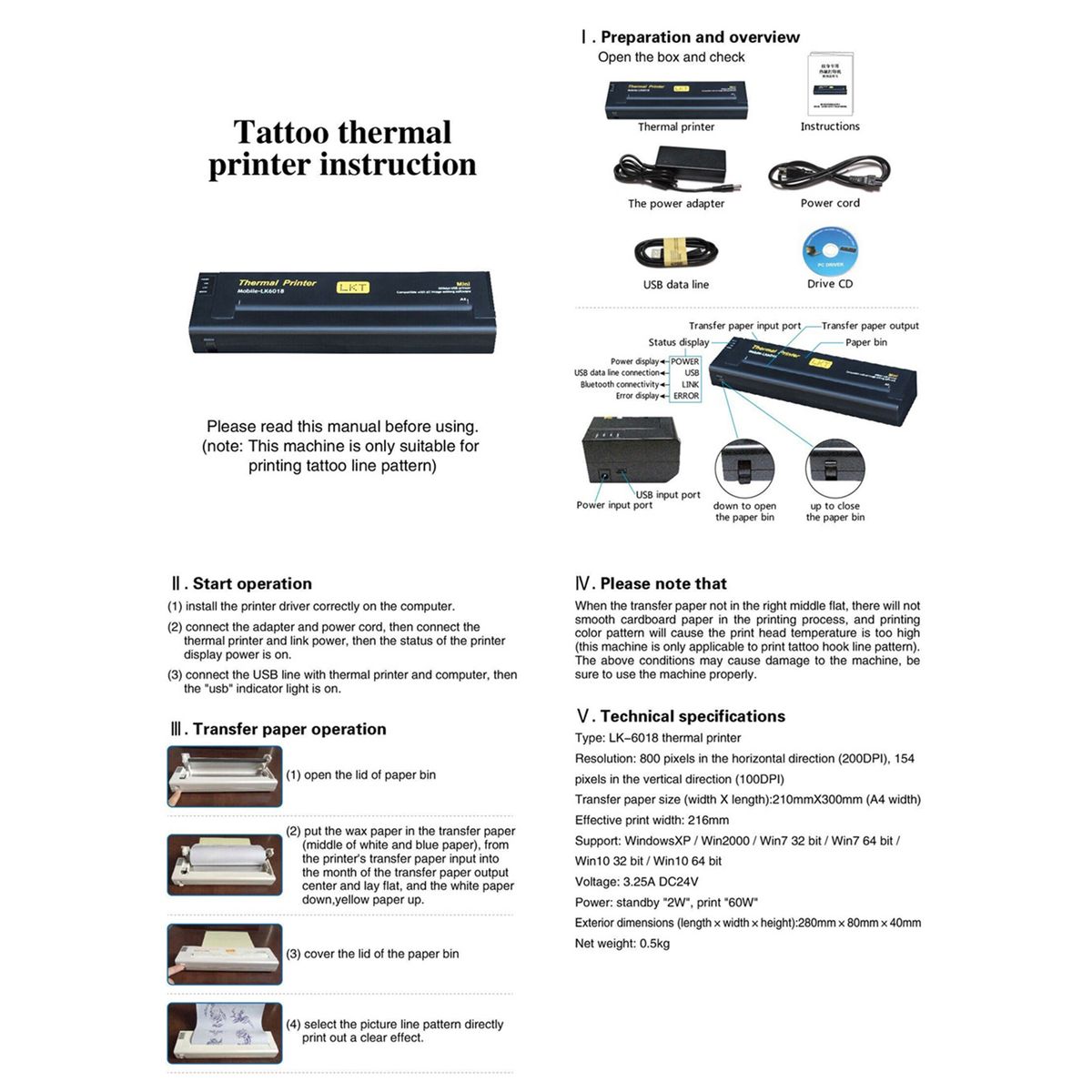 2. The machine works with special tattoo machine printing paper (please prepare by yourself), not with the ordinary A4 paper.