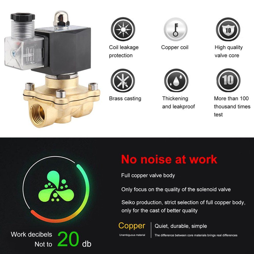High performance 1/2 inch ac 220v square coil pure copper direct acting solenoid valve.