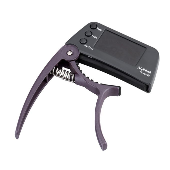 Multi-functional 2-in-1 guitar capo & tuner for multiple string instruments. With a large LCD display which makes it very user friendly by changing color to let you know the tuning information.