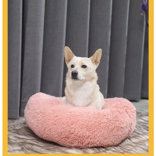 Buy TD Donut Shaped Plush Calming Faux Fur Pet Bed - Peach- 4XLarge 110cm in Nigeria