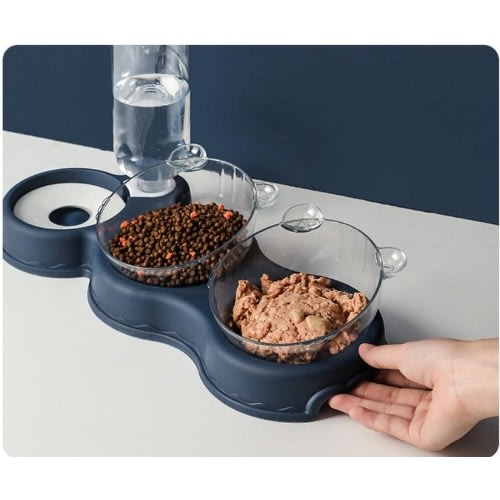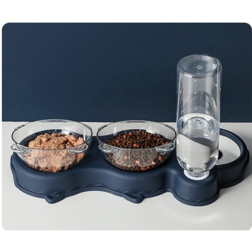 Buy TD Double Food Bowls Auto Water Feeder Dispenser For Cat & Dog - Dark Blue in Nigeria