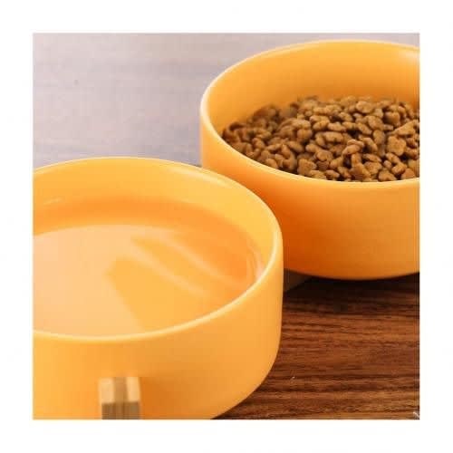 Buy TD Elevated Ceramic Dual Ceramic With Bamboo Stand -1800ml -Yellow in Nigeria