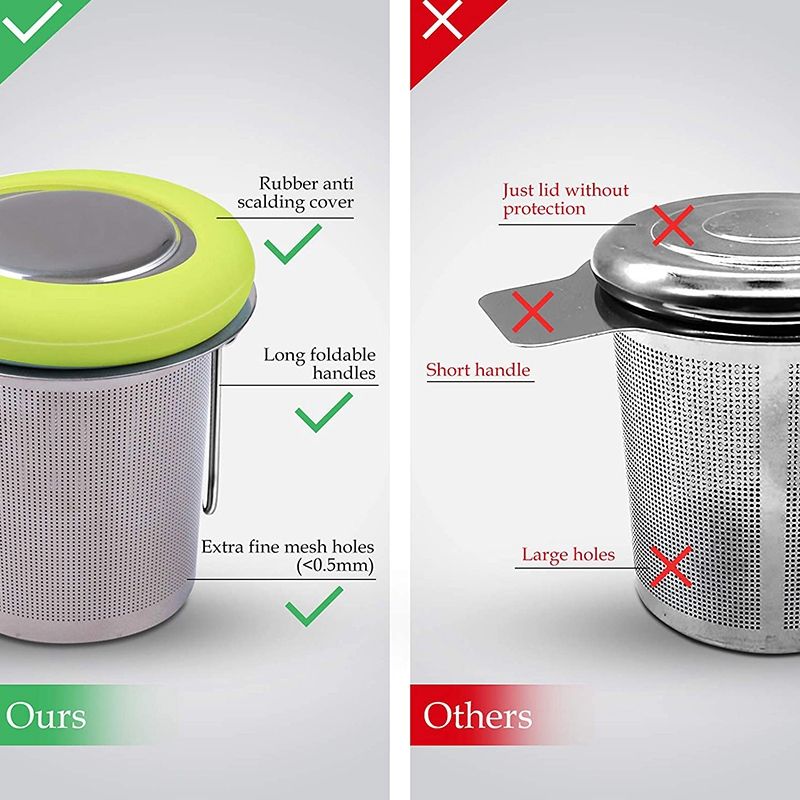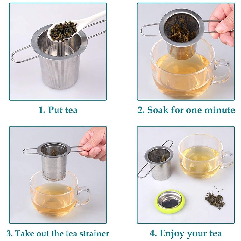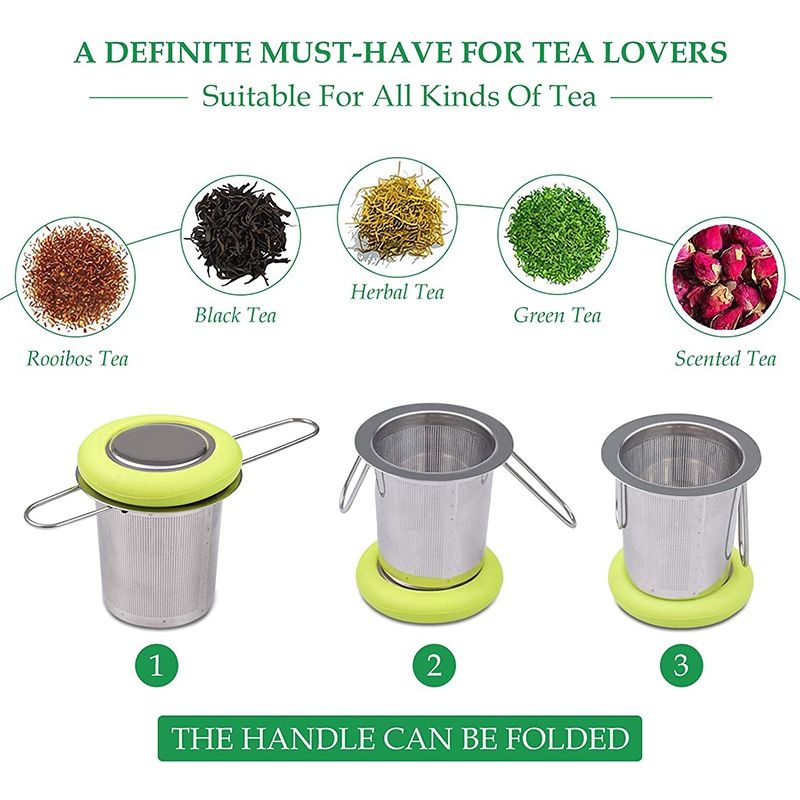 Tea Infuser Stainless Steel Tea Strainer Folding[High Quality] The teacup strainer is made of high-quality material. All parts are made of safe materials, are harmless to the body, have no special smell, and do not contain any harmful chemical substances. The tea net is very fine, with more than 6000 water holes, and the round holes are as low as 0.5 mm. This means a better cup of tea with less water and a smoother taste. A must for tea lovers.