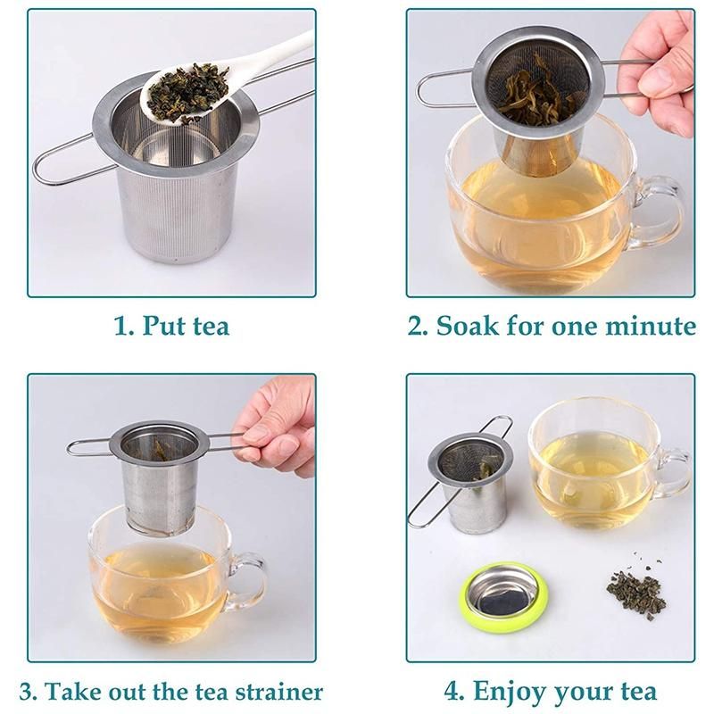 [High Quality] The teacup strainer is made of high-quality material. All parts are made of safe materials, are harmless to the body, have no special smell, and do not contain any harmful chemical substances. The tea net is very fine, with more than 6000 water holes, and the round holes are as low as 0.5 mm. This means a better cup of tea with less water and a smoother taste. A must for tea lovers.
