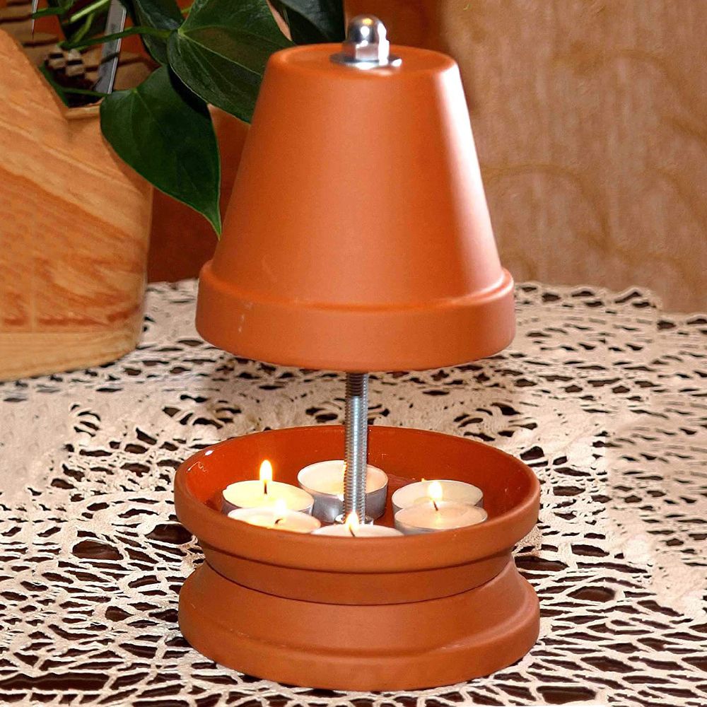 1:Storing heat: Due to the double-layer construction, the base is sturdy, the clay pot heats up very quickly thanks to the candle heating, and it stores heat very well. The heat is then released into the surrounding air.