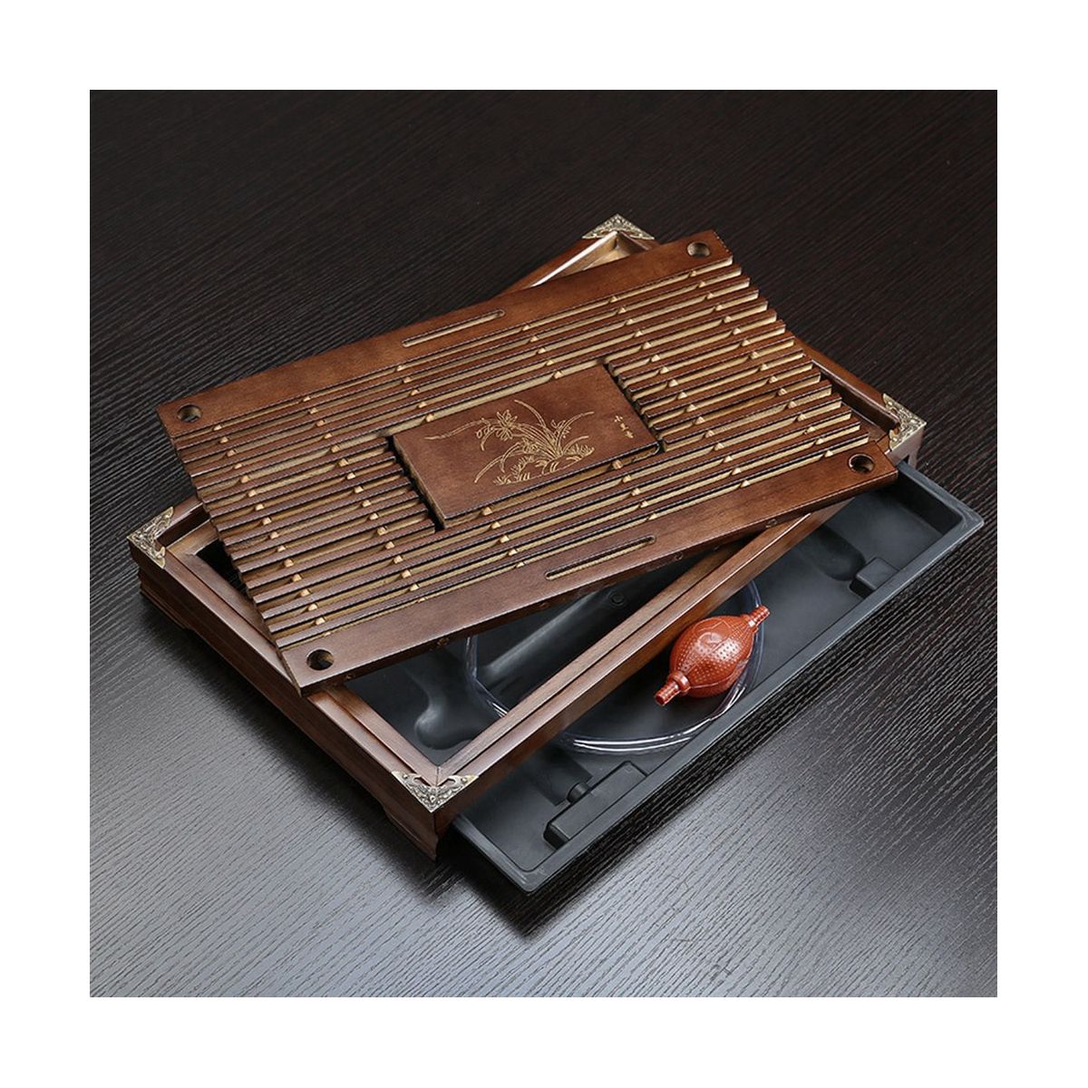 FUNCTIONAL & DURABLE: This tea table works well to display your tea sets and keeps your table cleaner; handy removable plastic tray for liquid disposal, prevents water damage to your tables.