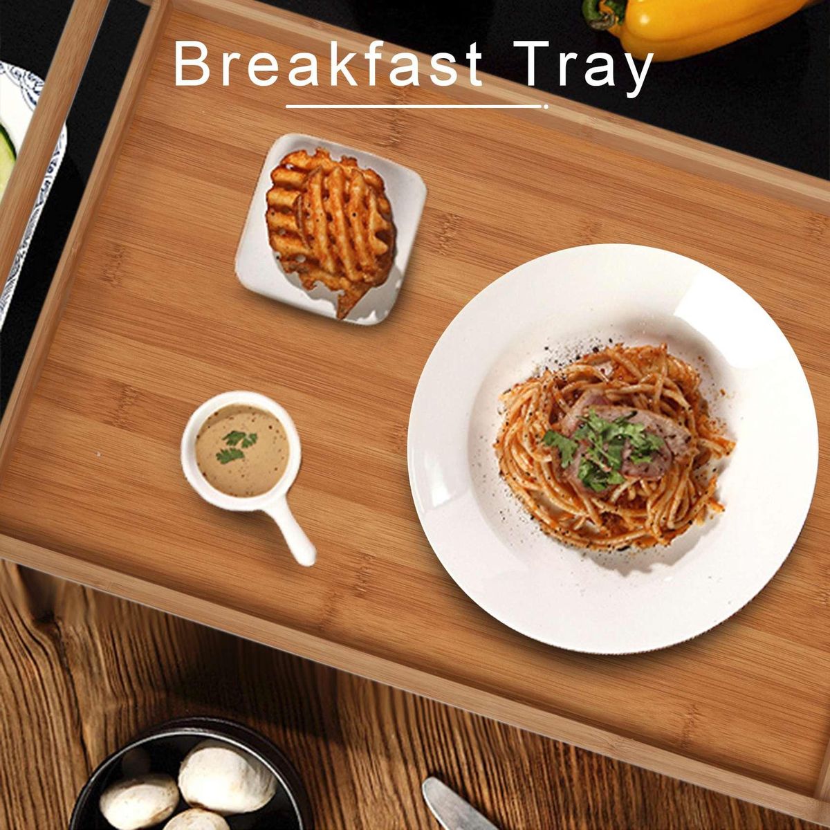 Detailed Information About The Product:High- Bamboo Serving Tray: Made from natural bamboo and renewable resources,more stronger and beautiful than regular wood serving tray,and to durability and stability. It has elegant sides with wide handles for . It has a surrounding tray lips that prevent items from falling over.