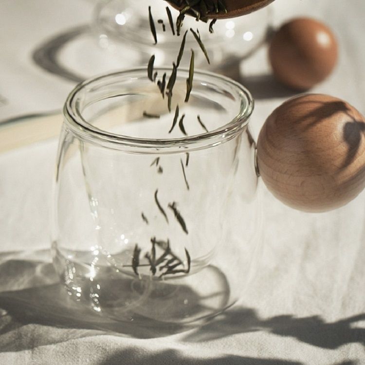 Teacups Glass Wooden Handle Tea Cup, Style:Fun Star Cup 7B