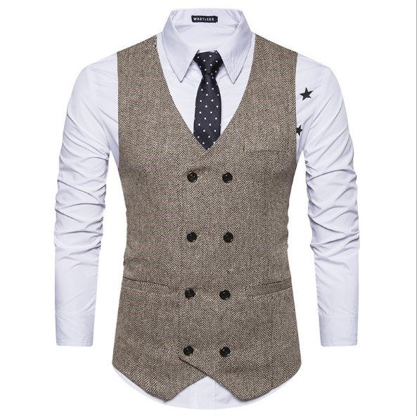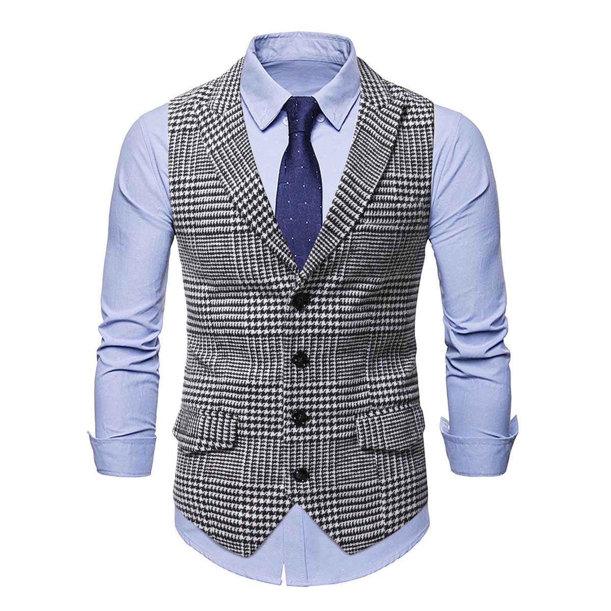1X Mens Suit Vest Lapel V Neck Wool Wool Plaid Casual Formal Business Vest Waistcoat Groomman For Wedding Green/Brown/Grey/Coffe