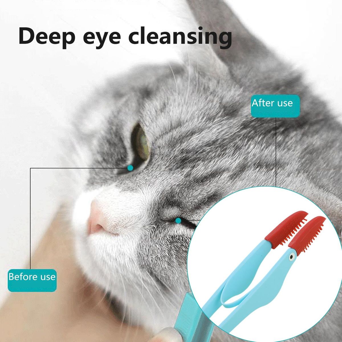 The pet tear stain brush the ultimate solution for maintaining your pet's eye health! this one-piece molded brush is designed to remove stubborn eye mucus and keep your pet's eyes clean and clear. made with high-quality, flexible silicone bristles, it is completely odorless and safe for your pet's delicate eyes. suitable for both cats and dogs, this universal brush is highly effective in daily cleaning as well as targeted local cleaning. with just one flush, you can ensure a thorough cleaning experience. say goodbye to tear stains, increased secretions, itching, and discomfort caused by foreign objects. this product is a reliable companion in safeguarding your pet's eye health. invest in the pet tear stain brush today and provide your furry friend with the care they deserve!