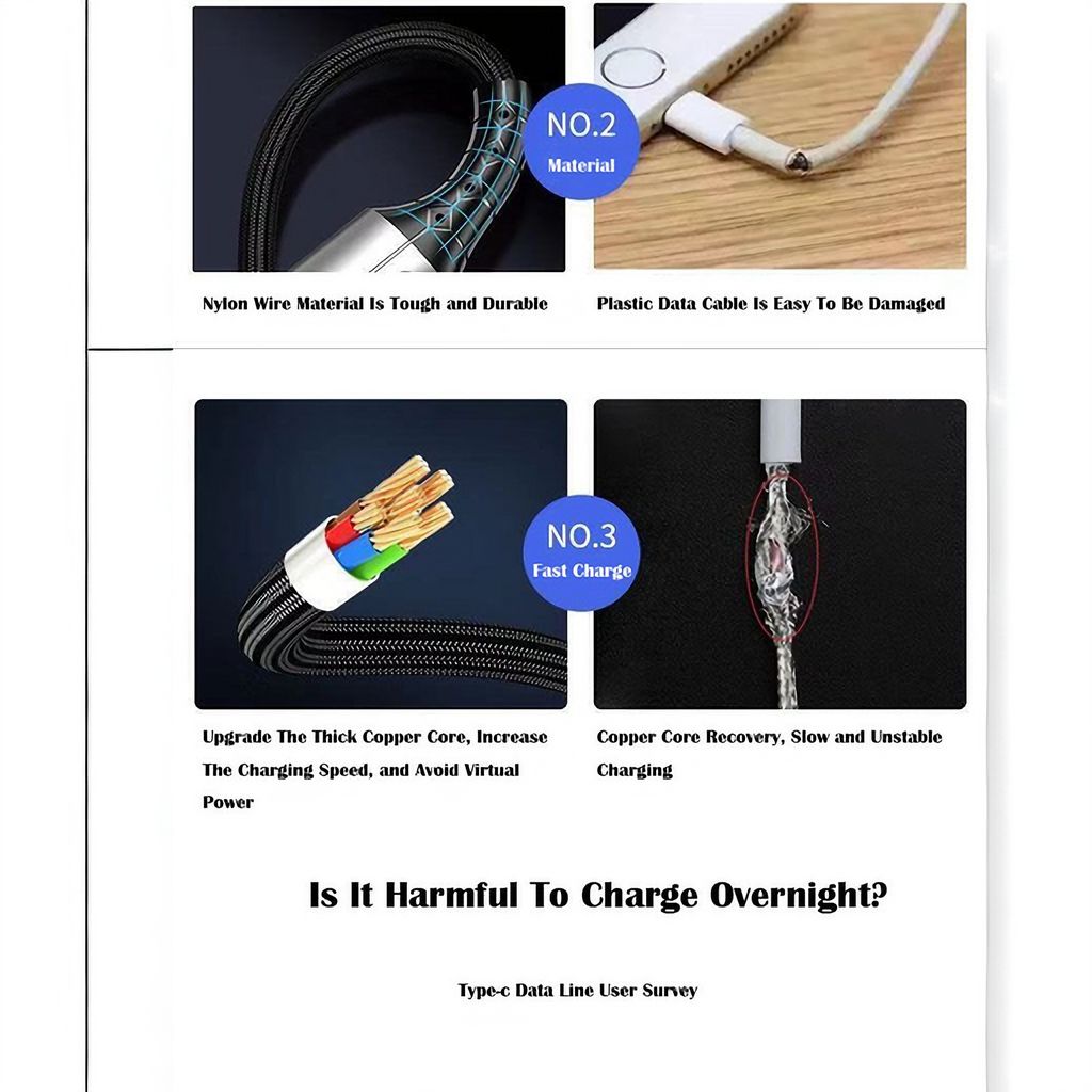 ☑Overcharging protection: The data cable features overcharging protection, automatically ceasing charging when the device reaches a certain battery level to prevent potential risks associated with overcharging.