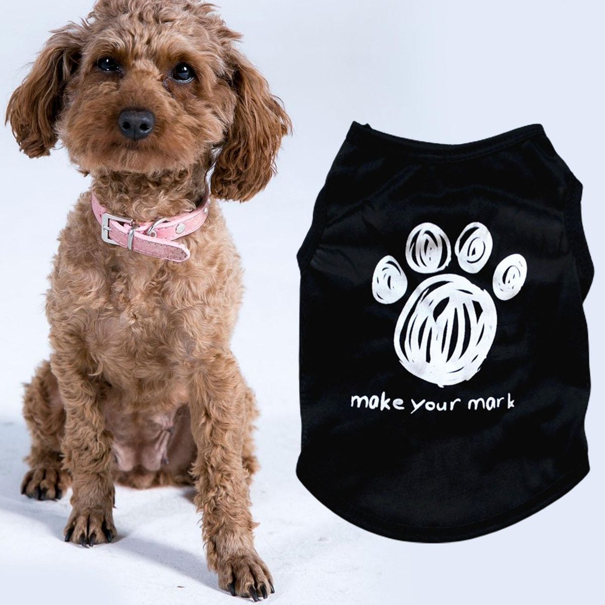 Characterized by vibrant color and cartoon print with paw and letter pattern, this pet shirt can make your pet adorable and attractive in the crowds.