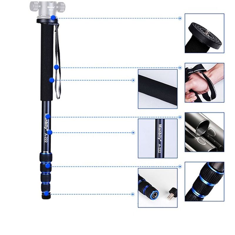 Aluminium alloy construction, maximum diameter of the monopod is 25mm, maximum weight capacity can reach up to 10kg.