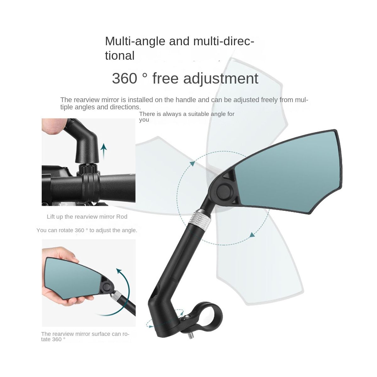Ball pivot free rotation, mount base 360°scale adjust, tool free; Item: Bicycle Rear View Mirror