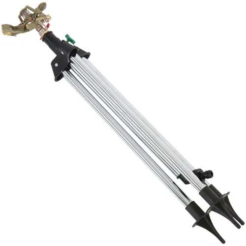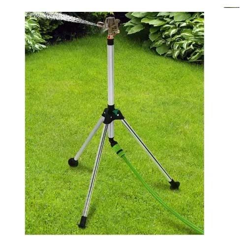 Impulse sprinkler with telescopic tripod Suitable for irrigating large areas Stable thanks to the tripod Two irrigation angle regulators Diffuser for controlling the flow of water: from the intense jet to a light sprinkling Deflector for the height control of irrigation Maximum radius of approx. 17 m