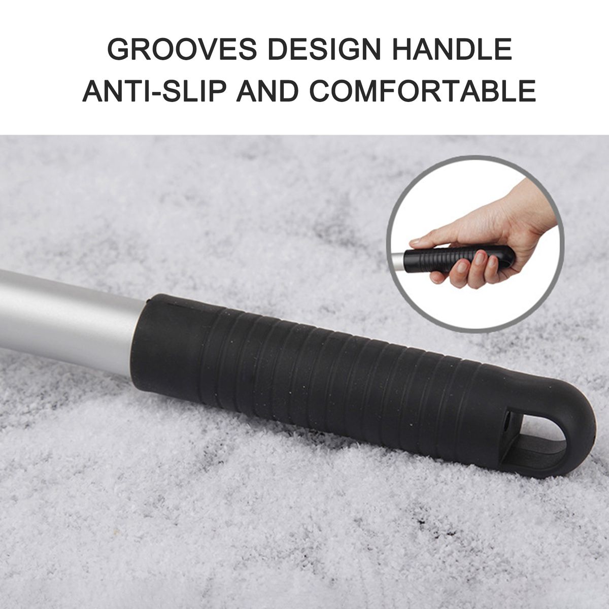 The telescopic snow scraper is length adjustable, equipped with aluminum alloy stretching rod, strong and durable to use.