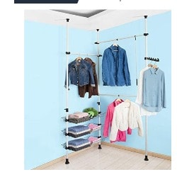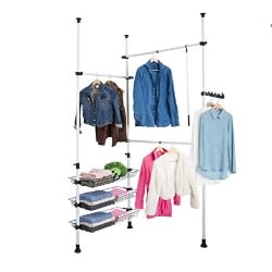 Telescopic Wardrobe Organiser, Hanging Rail, Clothes Rack, Storage ShelvingThis shelving system offers a lot of storage space for clothes and other accessories.The adjustable size of shelving is the perfect wardrobe for a walk-in closet, dressing room or bedroom.Material: Metal tube with plastic connectors; White finish won't snag or rust.Dimensions: L(160-195) x W38 x H(103-278)cm; Loading capacity up to 90 kg.Please note it can not be fitted to the sloping/vaulted ceilings