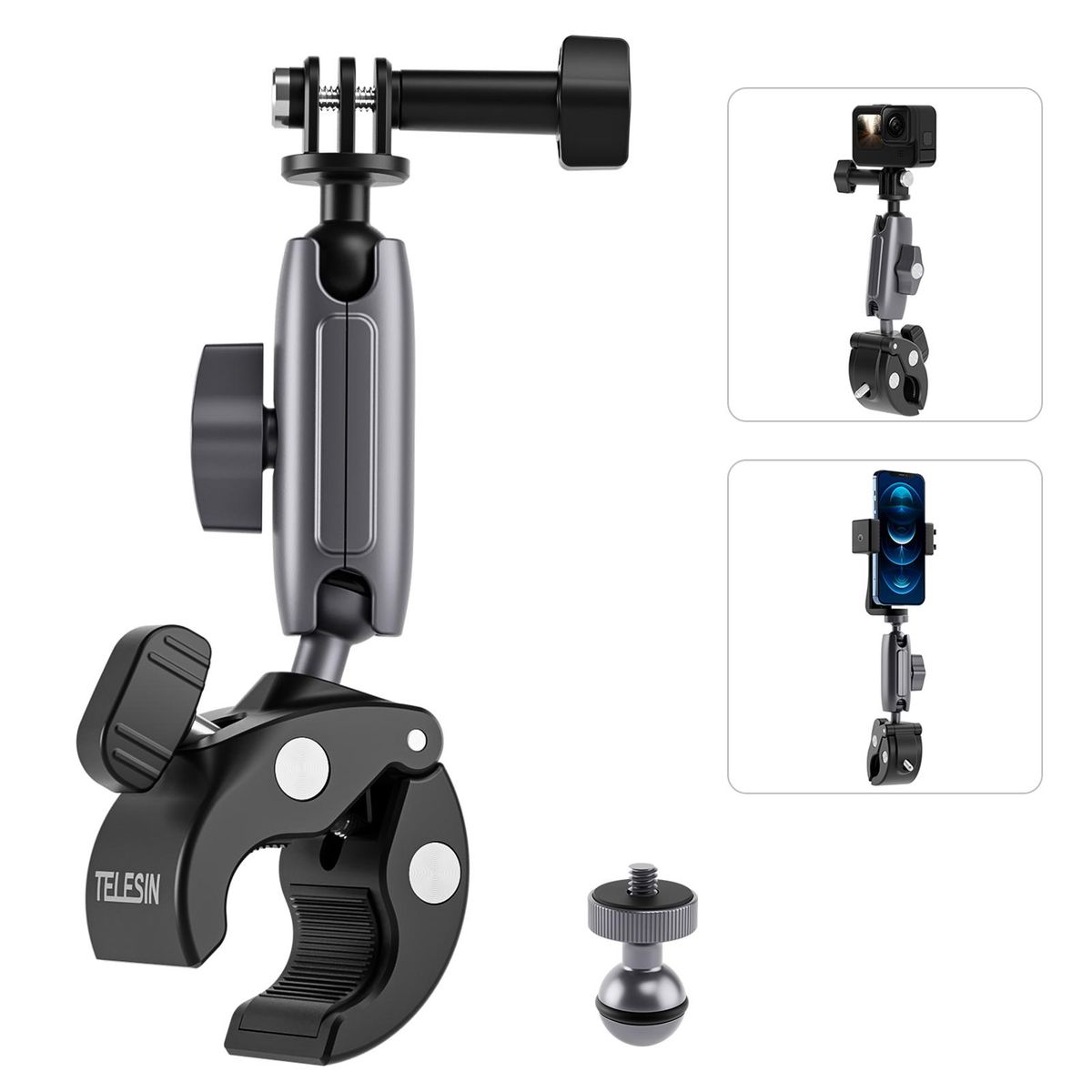 Buy TELESIN GP-HBM-001 Bicycle Handlebar Super Clamp Mount Aluminum Alloy Dual 360° Rotatable Ball Head with Sports Camera Mount Adapter & 1/4 Inch Screw Mount Adapter Replacement for GoPro 11/10 in Nigeria