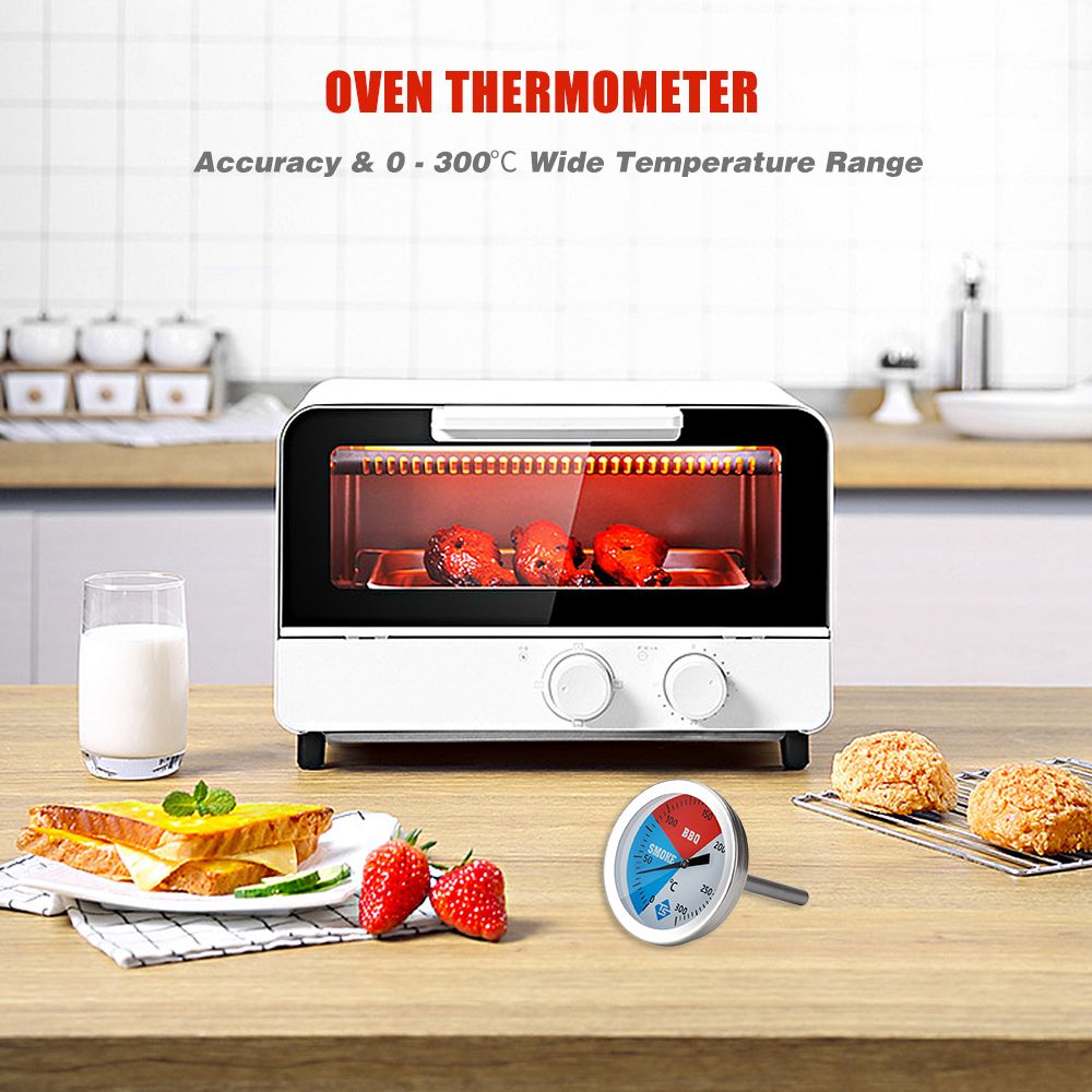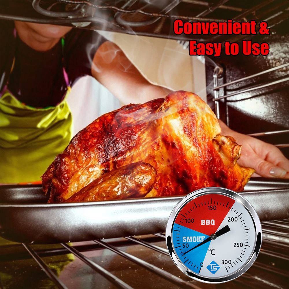 The thermometer provides accurate cooking temperature readings for barbecue and oven, 0 to 300 degrees Celsius gauge.