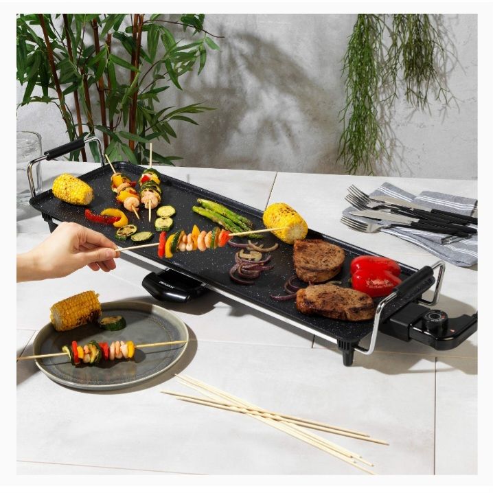 The Progress Electric Teppanyaki Grill is designed to make cooking exciting, without compromising efficiency. The non-stick grill means you can cook with little to no oil, making it a healthier alternative. This also ensures that the clean up is easy, just wipe down with warm, soapy water. Make mealtimes exciting, the Teppanyaki grill is a fun way to get the family cooking. Generously sized, cook steak, salmon and veggies all at once to make family meals easier.