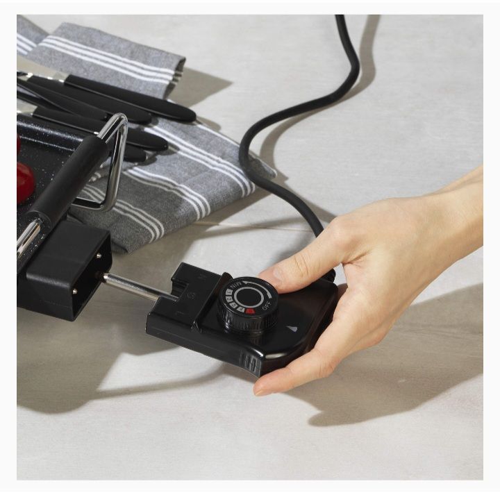 The grill also features cool-touch handles on the grill plate for easy maneuverability and anti-slip feet for added safety during use.