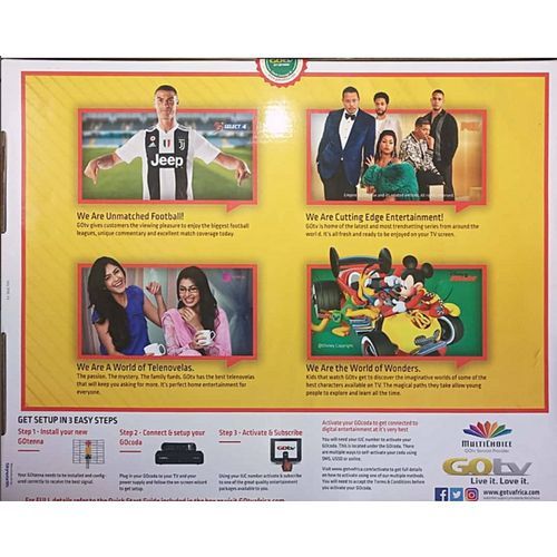 Gotv is a pay TV service offered in Africa by Multichoice Africa. Unlike the other pay TV service from Multichoice Africa (DSTV), which is satellite based, Gotv is terrestrial digital TV service. So, no need for dish and ceremonial installation, leading to reduced access cost. Gotv is currently available in select cities in Nigeria, Zambia, Uganda, Ghana, Malawi, Namibia, Zimbabwe, and Kenya.
