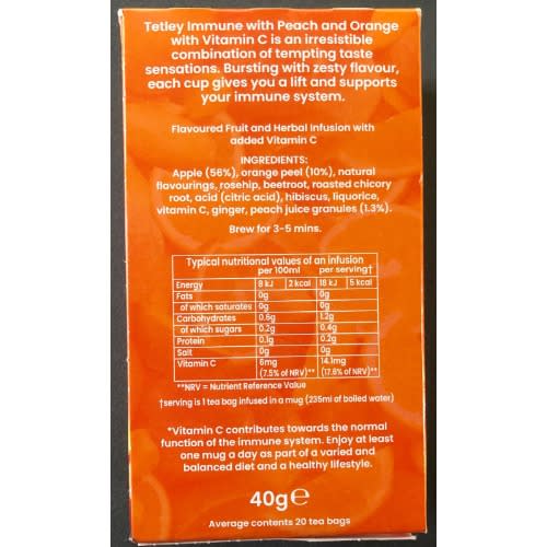 Buy Tetley Super Fruits Immune With Vitamin C Peach & Orange Tea - 40gx 20 Tea Bags in Nigeria