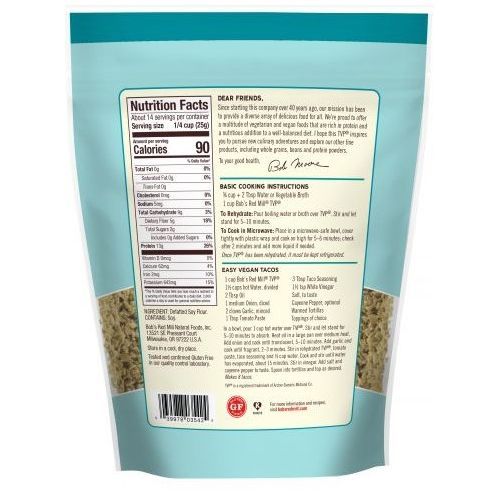 DELICIOUS AND NUTRITIOUS: Textured Vegetable Protein is a good source of iron and potassium; one serving provides 13 grams of protein