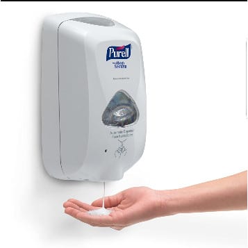 Simply place the hand into the C-shaped opening and press down firmly to dispense soap onto the fingers or into the palm of the hand.