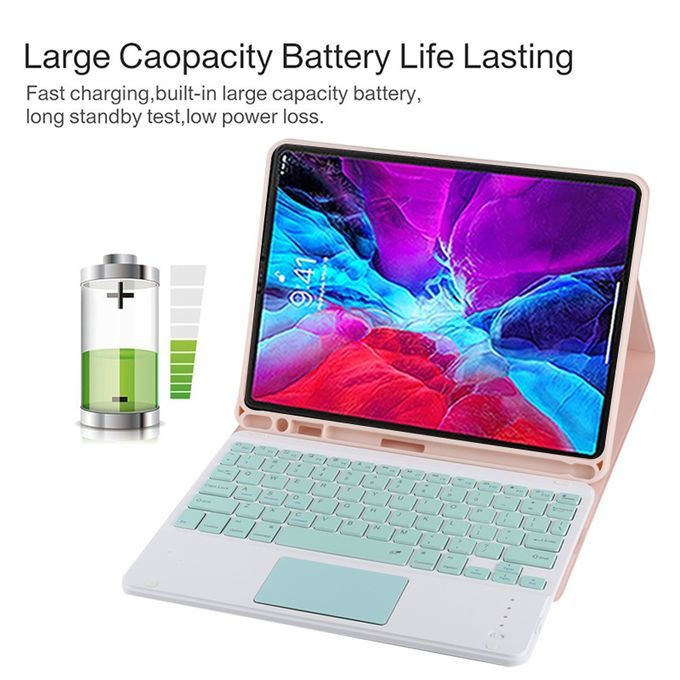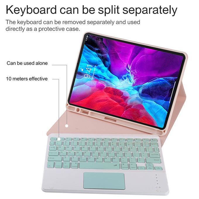 TG11BC Detachable Bluetooth Green Keyboard Microfiber Leather Protective Case for iPad Pro 11 inch (2020), with Touchpad & Pen Slot & Holder (Pink)