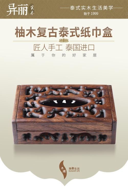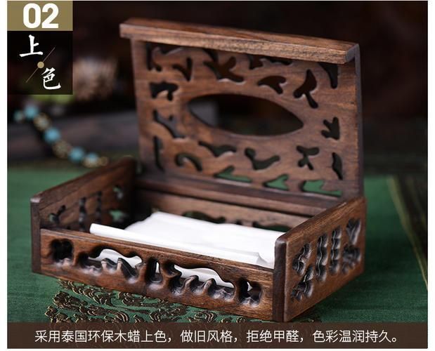 Thai Retro Wood Tissue Box Living Room Creative European Tray Tray Paper Box Napkin Tray -Tissue Boxes