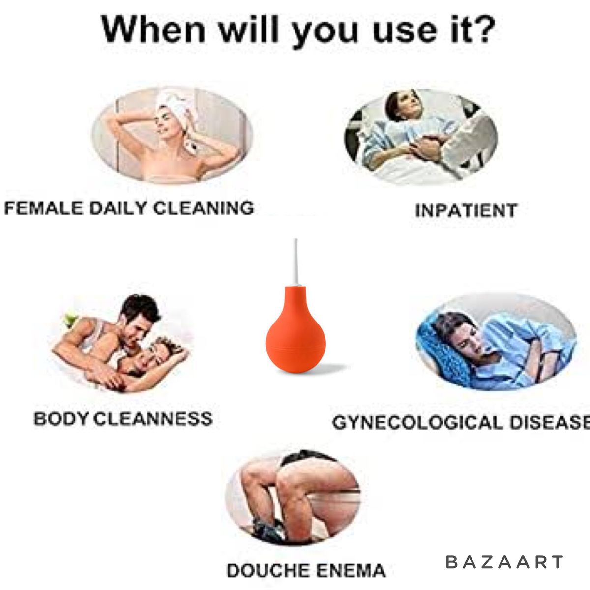 FDA approved material. The douche enema kit is made of premium Medical PVC with FDA certificate, BPA FREE and designed for anal douche enema. Perfect douche for men/women.