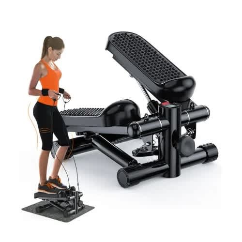 Product DescriptionThe compact and portable mini advancer with a resistance band can satisfy whole body exercises such as the back, legs, waist, arms, and so on. The digital display can record your exercise data in real-time, so as to optimize your performance every time.About this itemDigital Display - A mini stepper equipped with a digital display that shows exercise steps, exercise time, total count, and calories in real-time, so that you can effectively track and optimize your every exercise performance.Equipped with Resistance Band - While using the mini stepper, you can use the resistance band that comes with the workout equipment to exercise your arms.Slip-resistant Foot Pedals - The mini stepper adopts non-slip foot pedals to maintain stability to ensure the safety of the user during the entire exercise.High-quality and Durable - The max load-bearing capacity of the mini stepper is 220 pounds, low noise, safe material, and stable heavy-duty steel structure can provide years of reliable use.Compact Design - The size of the mini stepper is 13.8*17*13 inches, and it occupies a small area.