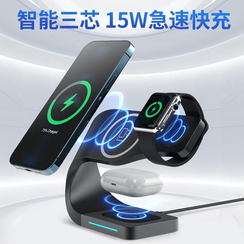 Buy The new four-in-one wireless charger is suitable for Apple mobile phone watch vertical folding 15W wireless fast charging 178 black in Nigeria