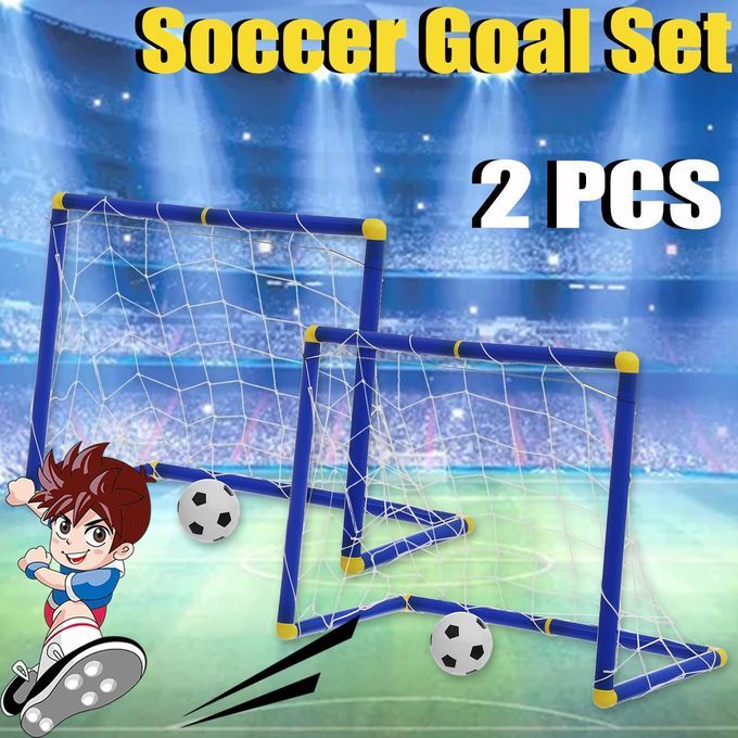 1 x Football Soccer Goal Post frame set 1 x Inflatable soccer 1 x Net 1 x Inflator