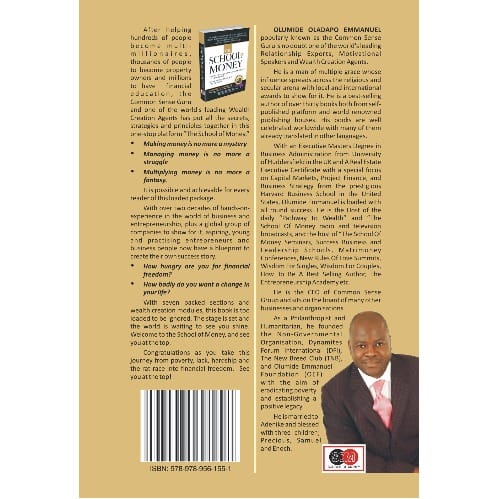With seven packed sections on wealth creation modules, this book is too loaded to be ignored. The stage is set and the world is waiting to see you shine. Welcome to the School of Money! Congratulation as you take this journey from poverty, lack, hardship and the rat race into financial freedom. See you at the top