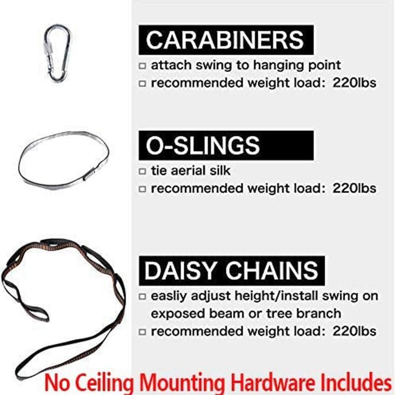 [DURABLE & SAFE]: The therapy swing comes with silk Nylon hammock, 1 Multi-loop climber strength daisy chains, 1 safety carabiner with twist lock system and 1 connecting rope.