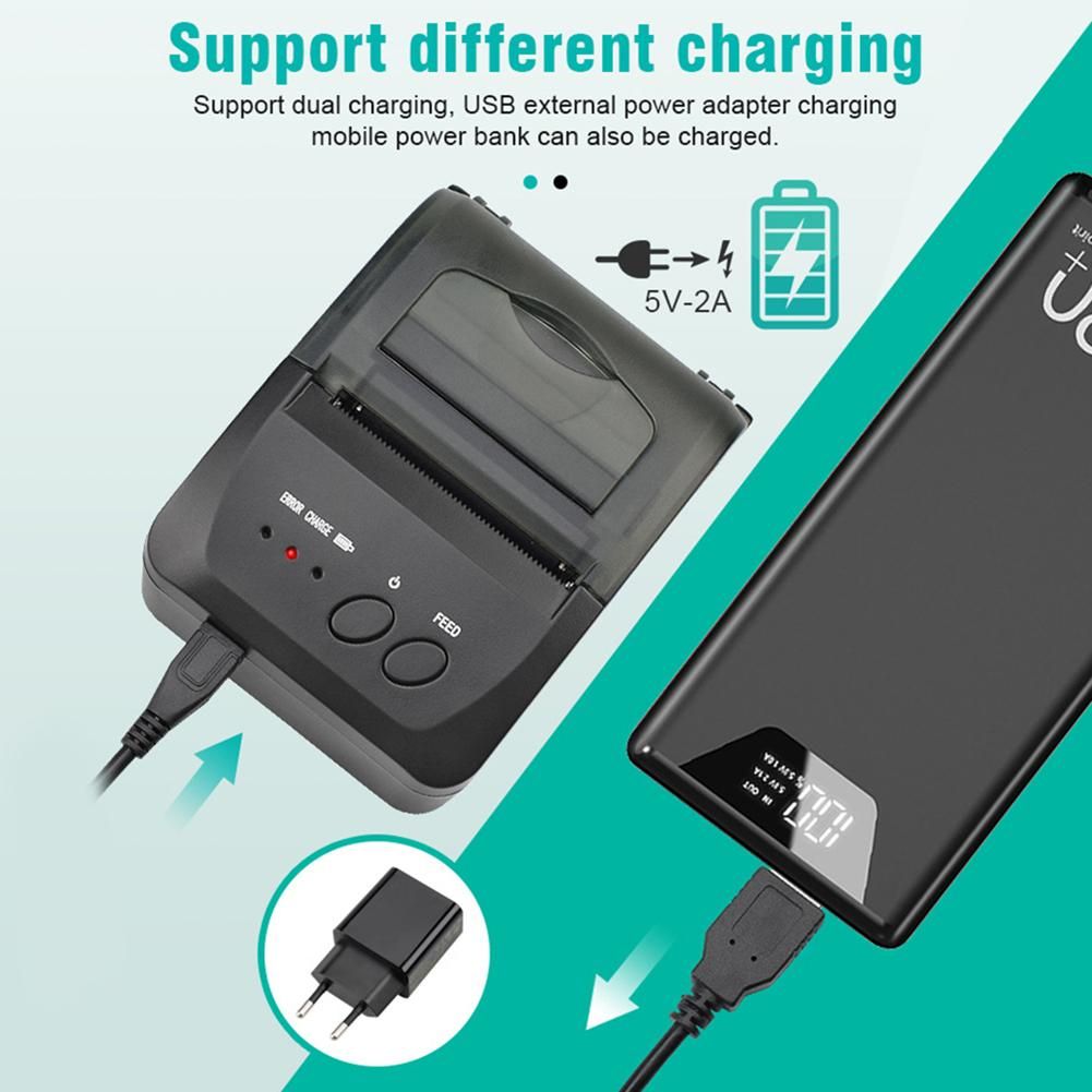 Battery a lithium-ion battery: The Bluetooth receipt printer has a built-in 1500 mAh rechargeable lithium-ion battery with a 5 -6 day standby time, Bluetooth 4.0, auto power off, auto wake up, and save Energy.