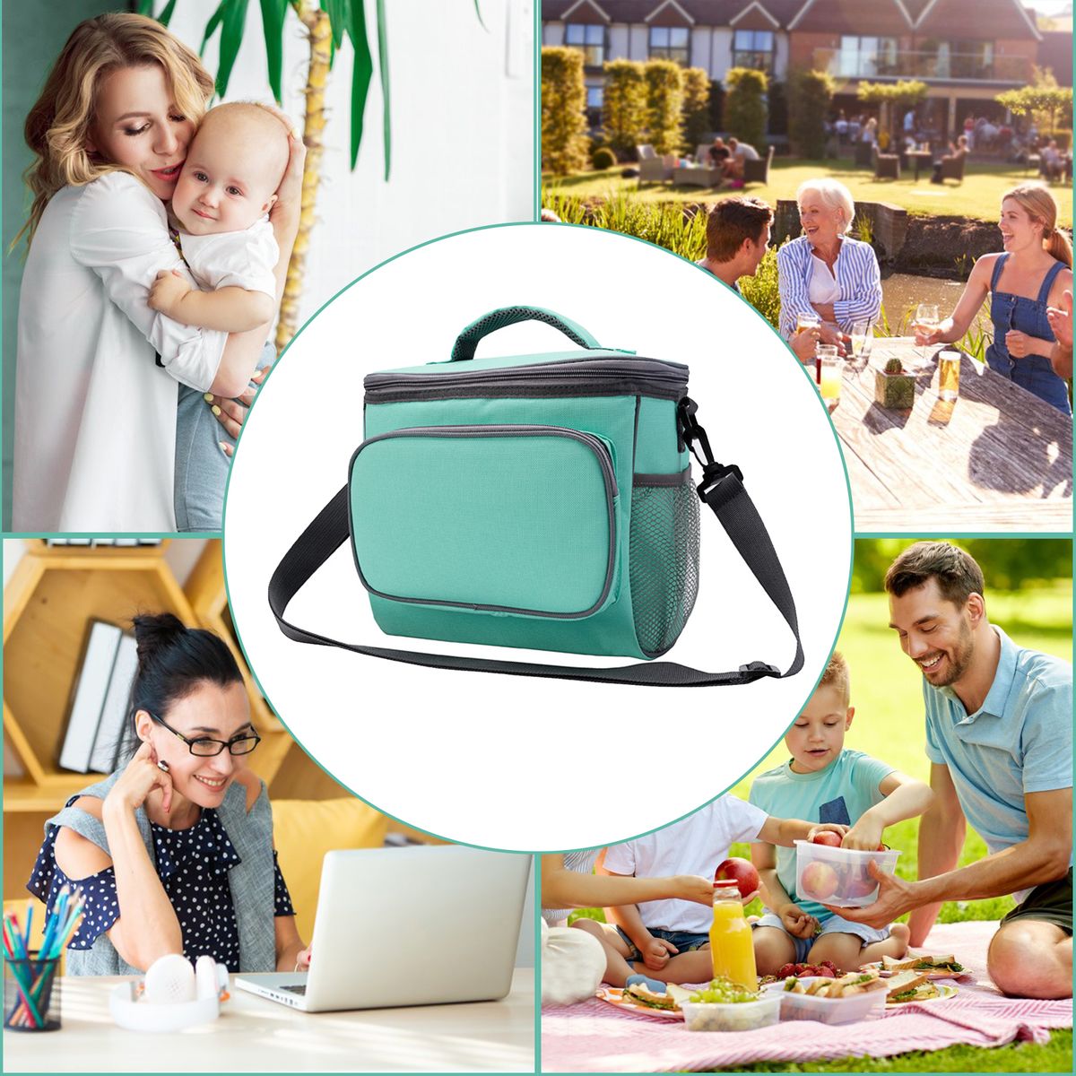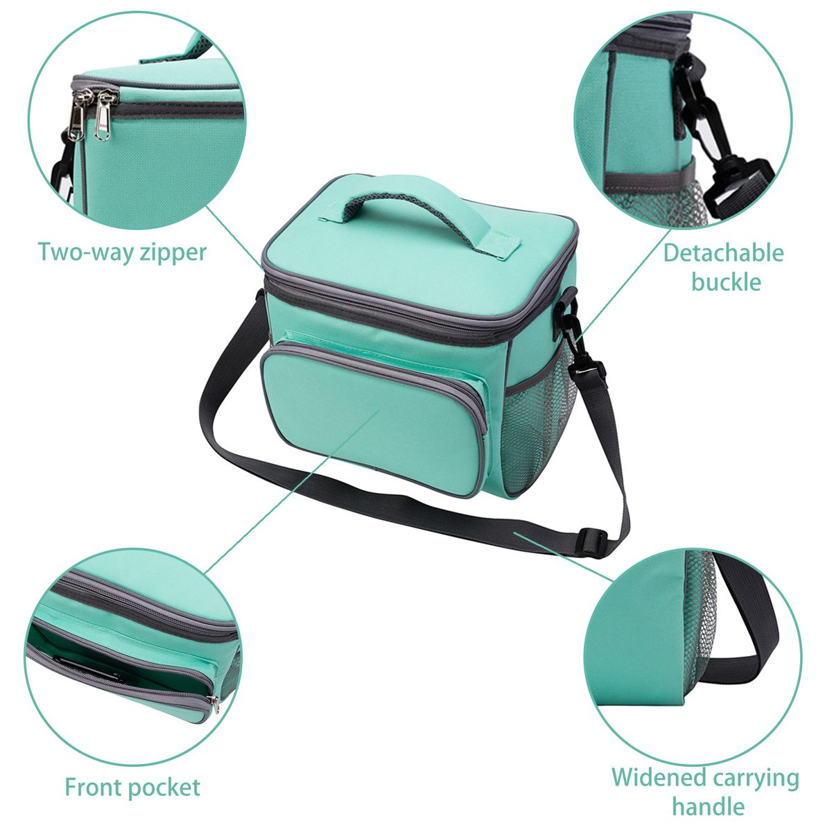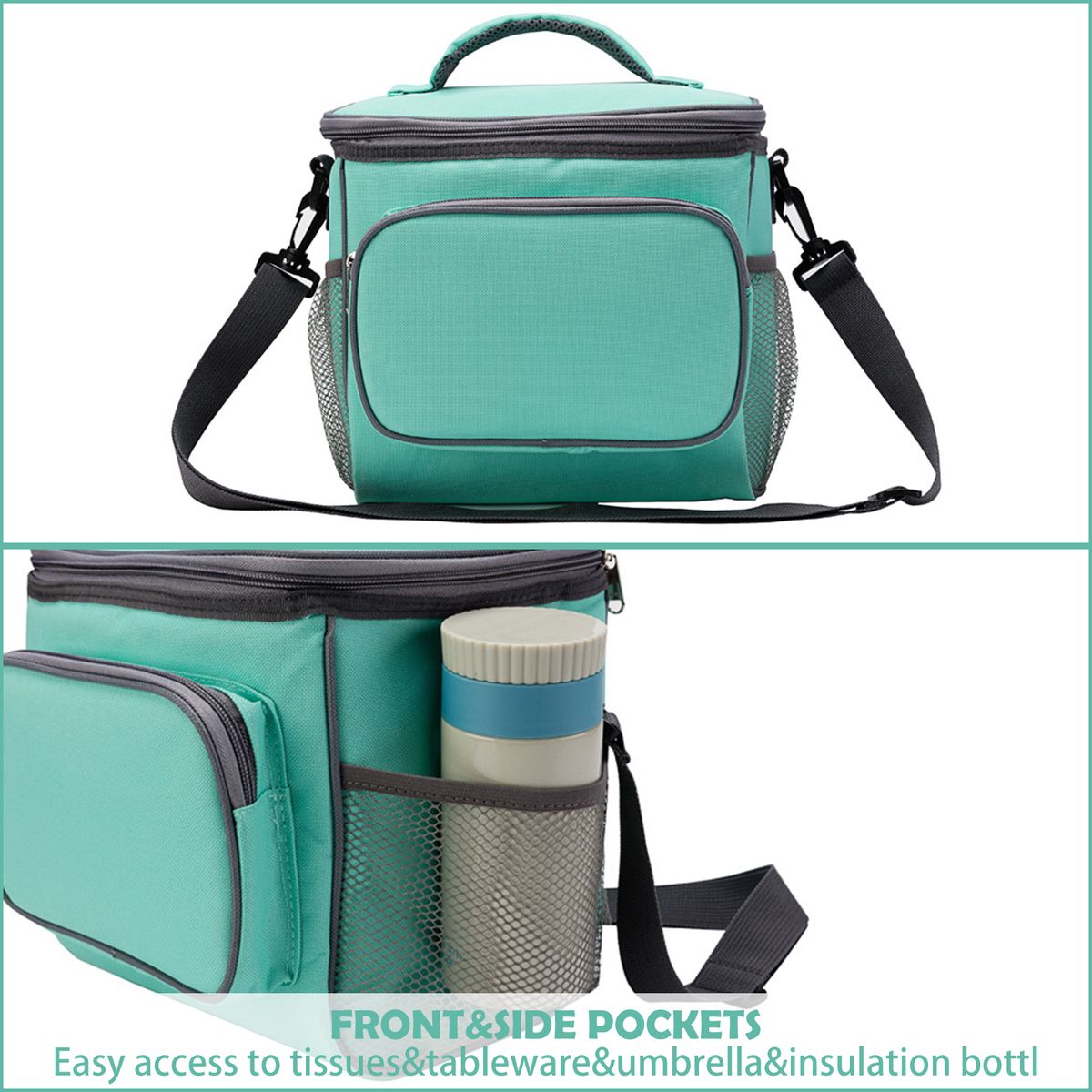 CONSIDERATE: Front amp;side pockets ensure easy access to tissues, tableware, umbrella, and insulation bottle. Two-way zipper; Widened carrying handle; Detachable buckle.