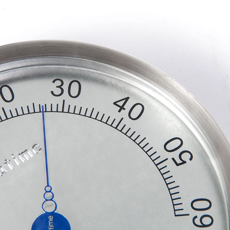 1.Item:TH602 2.Size:130mm(Diameter) 3.Material:Stainle steel 4.Temperature Range:-30℃~60℃ Measuring error:<±1℃~±2℃ 5.Humidity range:0%~100% Measuring error:<±5%~±7% 6.No battery required, mechanical auto sensing