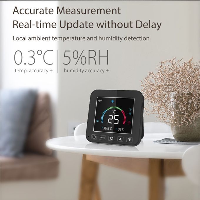 1. This thermostat can accurately measure and update data in real time without delaying the local ambient temperature and humidity. It can display and adjust the status of the air conditioner synchronously, and adjust the cooling,