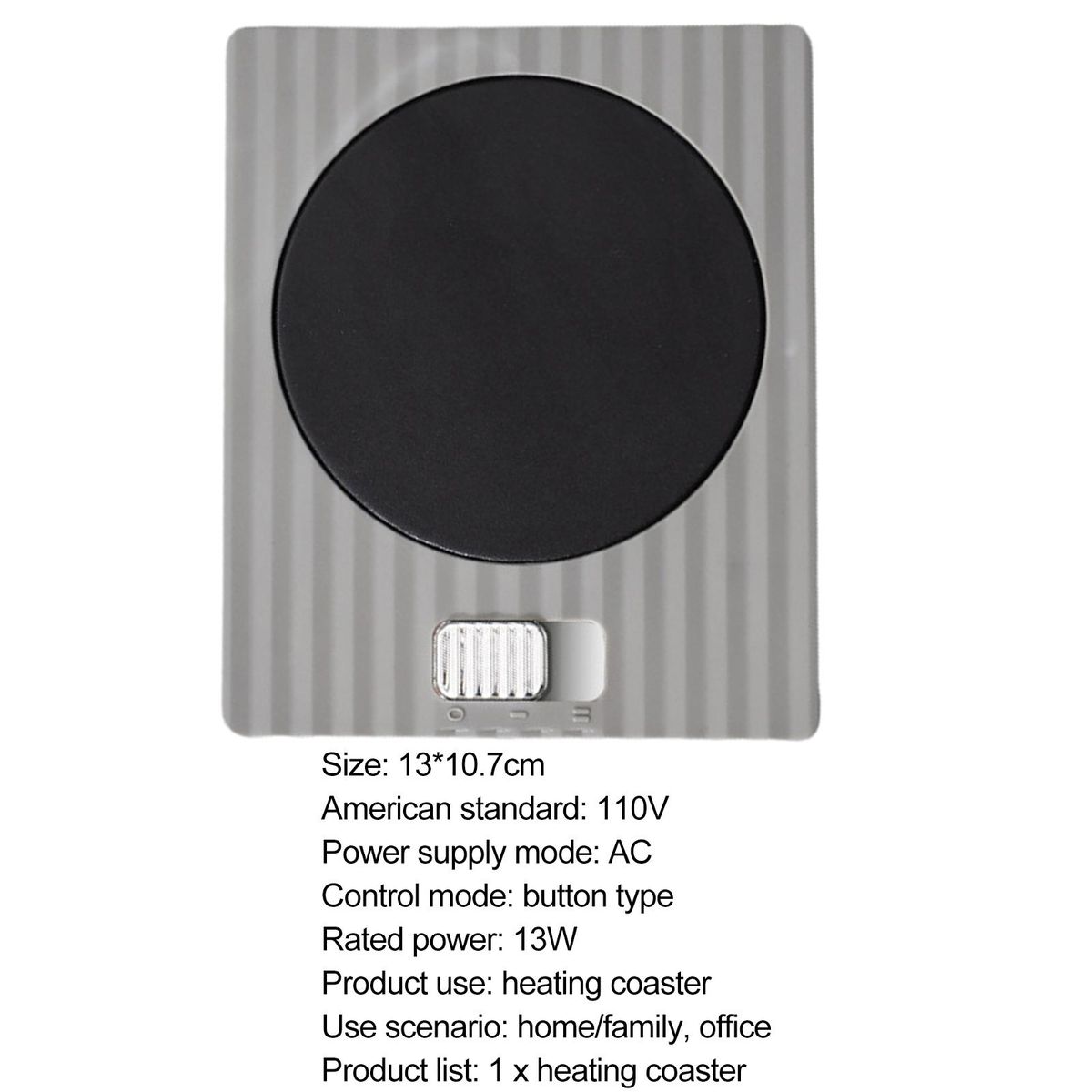 Major advantages of this thermostatic coaster are, two-position temperature adjustment, frosted non-slip heating plate, bottom heat dissipation hole design, safe and convenient to use.