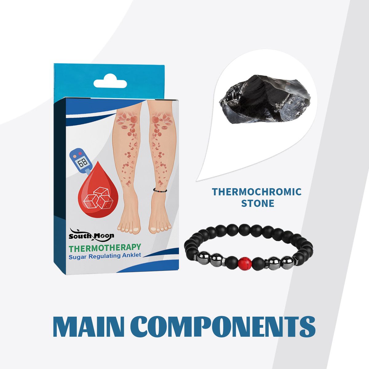 Ankle Bracelet: The thermotherapy sugar regulating anklet is designed to be worn on the ankle, as this is an area of the body that is particularly rich in blood vessels. By applying thermotherapy to this area, the anklet can help to improve blood circulation throughout the entire body, leading to better overall well-being.