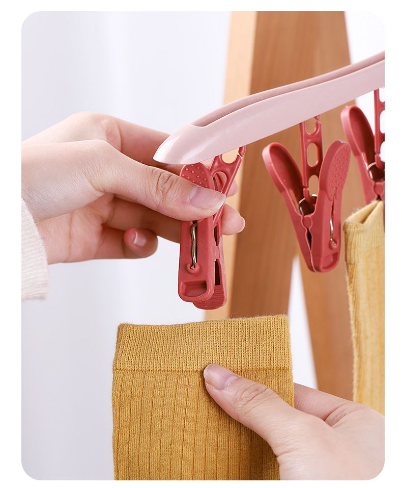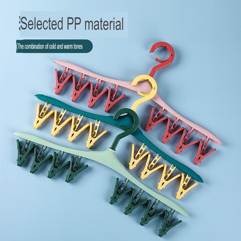 8 clips and it made by PP. The size of rack is 21cm x 43cm. It has wind hook design and smooth surface.